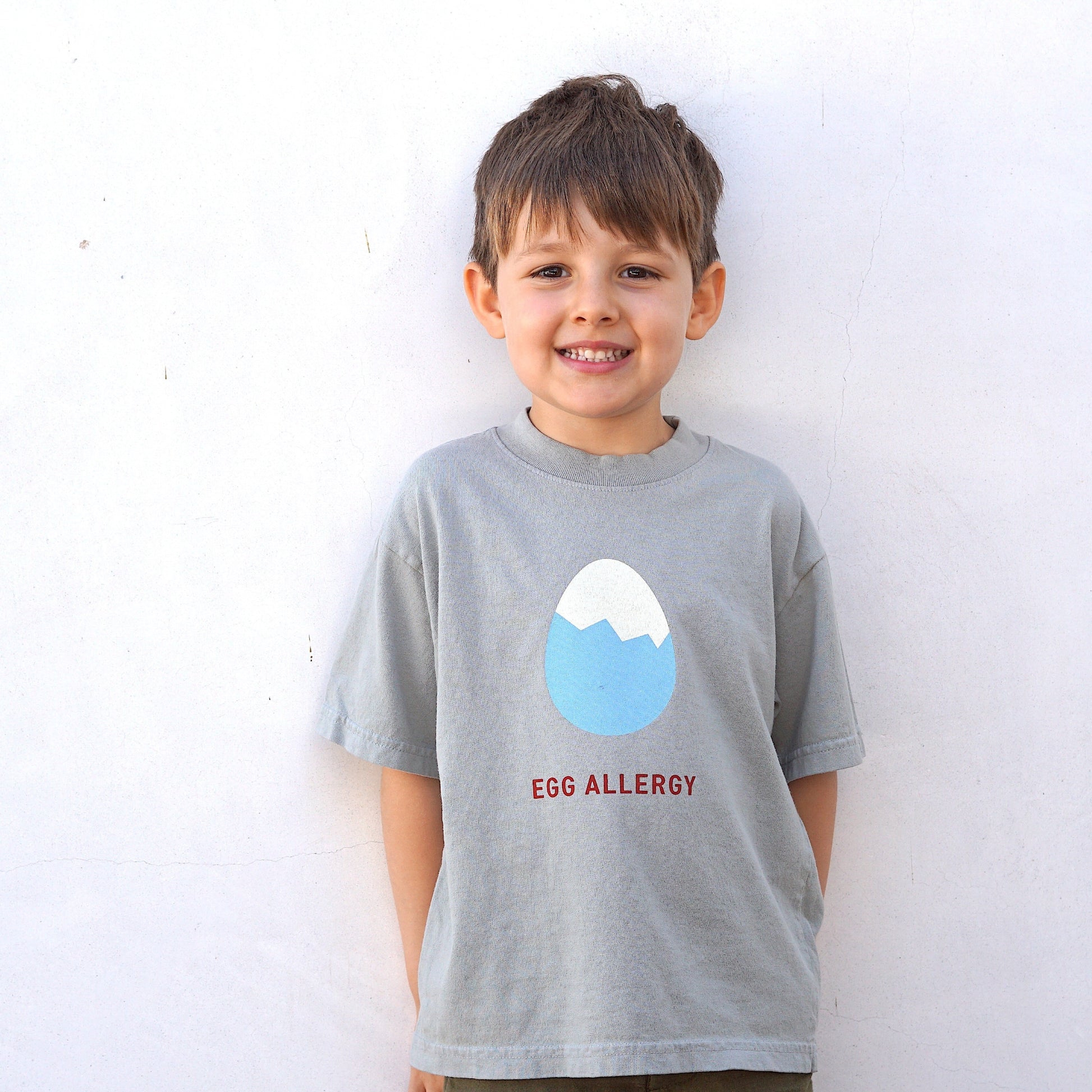 It's time to let everyone know that eggs are a no go. This t-shirt is built for toddlers - durable, comfortable, and cute. It's bound to turn heads - and get people turning around packages to check ingredient labels.